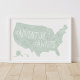 Poster Aventura Verde-Menta Aguarda Mapa dos EUA Decoraçã