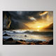 A powerful scene where the ocean meets the mountains beneath a blazing sky. The crashing waves symbolize movement and transformation, while the sun breaks through the clouds bringing hope. A striking artwork for spaces seeking energy, depth, and inspiration.