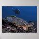 Tartaruga verde esnozando numa posição embaraçosa sobre o recife, Ilhas Gili, Indonésia