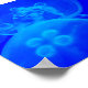 Três águas-vivas azuis flutuam serenamente em água azul profunda.