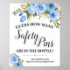 Sinal de chá de fraldas floral azul. Clique em "Editar design" para personalizar ou modificar o layout (mudar texto, cor da fonte, estilo da fonte ) **Corresponder a um pequeno cartão disponível HOW TO PLAY: os convidados irão adivinhar o número de pinos de segurança no frasco.