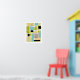 Este fabuloso poster moderno apresenta retângulos aqua azuis, abacados verdes, amarelos e de abstrato bronzeado, juntamente com os destaques das estórias em preto e branco.