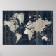 Pôster Azul de Mapa do Mundo Antigo