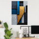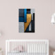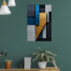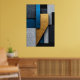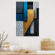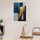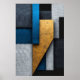 Composição vertical abstrata com painéis geométricos sobrepostos. Tons de azul profundo, dourado envelhecido e cinza concreto com textura rachada. Design moderno e sofisticado ideal para decoração de interiores. Traga elegância industrial e profundidade visual para a sua parede com esta peça de arte exclusiva.