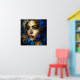 Um retrato cativante de uma bela mulher. Seus olhos azuis e lábios vermelhos vibrantes brilham nesta abstrato. As linhas de ouro traem contornos perfeitos, enquanto os tons de azul real e matizes ouros criam uma peça de cores mesmerizante. A trabalho de arte capta a essência de sua beleza numa sinfonia de elegância ouro.