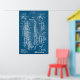 Poster de patente saxofone em azul. Correspondendo itens em nossa loja.