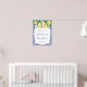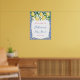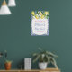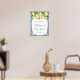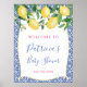 Limões em aquarela e lindas flores contra um fundo de padrão de azulejos azuis e brancos para este convite de chá de bebé ou noiva elegante.