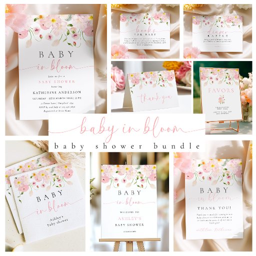 Celebrate the joyous arrival of a little girl with our "Baby in Bloom" baby shower table sign. This charming poster features soft, pastel pink delicate watercolor flowers in shades of pink.