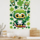 Cute Little St Patrick's Day Owl Cartoon Character standing on a branch and holding a Shamrock Clover. Original Vector Art Copyright BluedarkArt TheChameleonArt