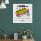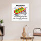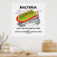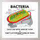 Poster de humor microbiológico memorável para microbiólogos e bacteriologistas apresentando uma célula procariótica/bactéria junto com o seguinte truísmo científico dizendo "Bactérias não podem viver com algumas delas e não podem viver sem algumas delas". Ponto de discussão para todos que sabem da espada de dois gumes que as bactérias podem ser!