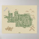 Poster de mapa tipográfico de quatro cores de Salt Lake City, bairros de Utah. Acabamento de Satin, papel pesado.