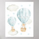 Adicione os retoques finais ao berçário do seu bebê ou ao quarto do seu filho com estas impressões de arte lindas! Design apresenta balão azul de ar quente, urso, coelho, lua, nuvens e estrelas.
