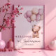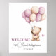 Este Poster de ursinho adorável tem certeza de colocar um sorriso nos rostos dos seus hóspedes! O esquema de cores roxo, castanho e bege torna este design perfeito para um chá de fraldas feminino. Personalize o Poster com seus detalhes e se quiser reorganizar o estilo e posicionamento do texto, pressione o botão "Clique para personalizar mais".