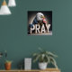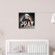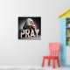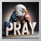 Uma águia majestosa careca é enfiada numa bandeira americana, amontoada acima de grandes letras de madeira soletrando "PRAY".