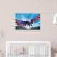 Pôster Bald Eagle voando no céu com uma bandeira american