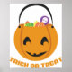 Balde de abóbora no estilo do Dia das Bruxas é cheio de doces saborosos. Leituras de texto, Trick Ou Tratat.
