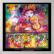 Amor romântico entre Arlecchino e Colombina : Colorida, brilhante violinista, uma linda loira de figurinos cintilantes. Pintura por aquarela em rosa claro, fuquesa, verde, vermelho, azul, amarelo e faíscas douradas inspiradas na Comédia de Arte (Commedia dell'arte) e no Carnaval de Veneza. É também um belo presente para o natal, feriado, ocasiões especiais, festas de aniversário, bola de mascarada do ano novo, Dia de os namorados.