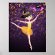 Este balé de Halloween, um belo poster, apresenta uma fabulosa lua roxa e laranja e estrelas de fundo com uma adorável bailarina vestindo um chapéu de bruxa com um taco fofo.