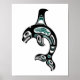 Este design único apresenta uma baleia assassina inspirada em Haida. O padrão nativo retrata uma design de orca tribal composta por linhas fluentes e formas elegantes. Um pequeno peixe aparece dentro do corpo da baleia com rostos estilizados dentro as barbatanas e a cauda. Este lindo padrão é uma representação na moda desta criatura majestosa e espiritual.