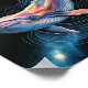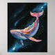 Uma mistura mesmerizante de abstrato e maravilha cósmica. Esta ilustração surreal apresenta uma baleia vibrante navegando graciosamente através de uma expansão celeste.