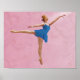 Esta adorável bailarina apresenta um estudo em graça enquanto ela faz um arabesco perfeito em sua fantasia azul. Uma rosa cor-de-rosa decora o cabelo dela. O fundo é um rosa mutado. Ela parece maravilhosa nesta imagem temática do balé. Personalize adicionando uma legenda, um monograma ou um nome.
