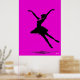 Celebre a beleza da dança com esta poster de bailarina minimalista. Uma silhueta preta salta graciosamente sobre um fundo cor-de-rosa, capturando elegância e movimento. Perfeito para estúdios, quartos e presentes para dançarinos e amantes de arte.