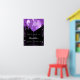 Um poster de boas-vindas para uma Quinceañera cinzenta e glamourosa, festa de aniversário 15. Um fundo preto decorado com púrpura de brilho, púrpura, pingos, pintura, balões. Personalize e adicione um nome e uma idade. Traseira: sem design