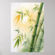 Fresh watercolor of green bamboo stalks with golden and green leaves on warm background. Peaceful zen botanical art perfect for creating calm, natural, Asian-inspired spaces.