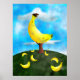 Conceito ecológico ilustrativo de uma bananeira cultivando uma banana gigante com muitas bananas pequenas espalhadas pelo chão. Imagem disponível em vários presentes e produtos.