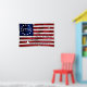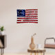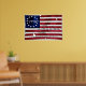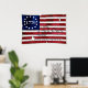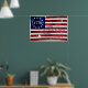 A rendição de uma velha bandeira americana testada da Revolução Americana com 13 estrelas e listras. "Join or Die" é impresso na bandeira. Um emblema patriótico.