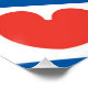 Bandeira da Frísia, uma província dos Países Baixos. É constituído por faixas diagonais azuis e brancas; nas listras brancas estão a pompa vermelha, folhas da lírio-d'água amarela, que podem lembrar um coração, mas, de acordo com as instruções oficiais, "não devem ter forma cardíaca".