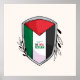 "A bandeira palestina cercada por ramos de oliveira com a frase 'Nós Iremos Retornar."