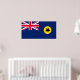 Esta design apresenta a bandeira da Austrália Ocidental, que é um Estado que ocupa a parte ocidental da Austrália, excluindo os territórios externos do país. O Estado da Austrália Ocidental é delimitado pelo Oceano Índico, a norte e a oeste, e pelo Oceano Austral, a sul; faz fronteira com o Estado da Austrália do Sul, a sudeste, e com o Território Norte, a nordeste. A Austrália Ocidental é o maior Estado da Austrália. A maior parte da população vive na área ao redor de Perth, que é a capital e a maior cidade do estado, deixando o resto do estado escassamente povoado.