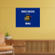 Essa design apresenta a bandeira estadual de Wisconsin, que fica no Centro-Oeste e nos Lagos Excelentes dos Estados Unidos. É confinado por Minnesota a oeste, Iowa a sudoeste, Illinois a sul, lago Michigan a leste, Michigan a nordeste e lago Superior a norte. A capital estadual de Wisconsin é Madison, e sua maior cidade é Milwaukee. O Estado é um dos principais produtores de leite do país e é conhecido como "Dairyland da América". É também conhecido como "Estado de Badger". A bandeira estadual de Wisconsin apresenta a casaco de armas do estado em fundo azul; mostra também texto contendo o nome do estado e o ano de 1848, que foi o ano em que Wisconsin foi admitido à União.