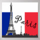 Bandeira francesa vermelha, branca e azul, listrada com a Torre Eiffel