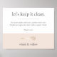 Lembre os clientes, funcionários e convidados para lavar as mãos e evitar o contato com superfícies com esta placa de chic e da casa de banho do escritório de olhares. Perfeito para padaria, restauração, loja de produtos de cozinha, chef ou restauração. Design apresenta a inscrição de cinzas modernas em um branco e cor-de-rosa pincelado com uma ilustração de uísque em folha de ouro falsa.
