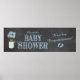 O quadro do quadro do quadro. Texto de tipografia azul. Esta faixa de chá de fraldas é personalizada com o nome da futura mãe. Pegadas de bebê azuis e "é um menino, parabéns. Um jarro de mason vintage com flores azuis do campo. Para adicionar produtos coordenadores - Visite minha loja "A Princesa Húngara" em www.zazzle.com/hungaricanprincess*. Olhe no meu departamento de coleções.