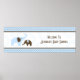 Pôster Banner de Chã de Bebê Azul com Ponto Stitch Elefan