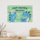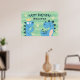 Uma bela faixa de aniversário feliz no poster econômico, projetada especialmente para celebrar o aniversário de um menino. Esta design tem um par de dinossauros azuis a sorrir um para o outro. O texto Feliz de Aniversário corre ao longo do topo da design com um modelo de texto para incluir o nome do seu filho. Este artigo faz uma maravilhosa decoração de festas para celebrar o dia especial do seu filho. Outros produtos correspondentes estão disponíveis neste design. Consulte a coleção completa de partes (mostrada abaixo).