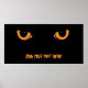 Gato preto e olhos laranja poster da festa de Halloween preto e laranja. O tamanho mostrado é 12"x24".