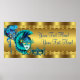 Máscara de pena azul e dourada muito grande, banner azul e mascarada dourado. Você pode personalizar esta faixa elegante do partido mascarada dourado com sua escolha de texto no estilo de fonte e na cor de sua escolha.