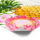 A bandeira de casamento do tema Luau Havaiano com folhagem tropical, plumeria, hibisco, abacaxi e madeira branca.