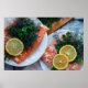 Poster mostrada com uma impressão fotográfica de um banquete de salmão que parece um excelente. Personalize este item ou comprar como está. Imagem do stock