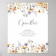 Este outono, bar de casamento de girassol aberto de poster é perfeito para um casamento rústico. O design apresenta várias cores aquáticas roxas, violetas, flores amarelas, burgundy buds e folhas verdes de azeitona lindamente agrupadas em buquês.
