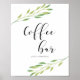 Poster Bar de café Aquarela verde folhas sinal de casamen