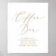 Este delicado cartaz de bar de café para caligrafia de ouro é perfeito para um casamento moderno. A design romântica minimalista apresenta uma magnífica e elegante tipografia amarela ouro champanhe num fundo branco com um aspecto simples e limpo.