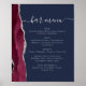 Um sinal elegante para o seu menu de bar de casamento. As palavras "menu bar" aparecem na caligrafia da cinza prateada com baloiços no início e no fim, com texto personalizável abaixo. Uma coloração d'água entorpecida agata design aparada com cintilação cintilante prateada decora a borda esquerda em um fundo azul marinho. Veja a nossa coleção para o convite de casamento e o diário de papelaria.