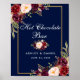Watercolor Floral Burgundy Marsala Blue Dourado Casamento de Chocolate Quente Poster