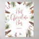 Celebrar a noiva com este chá de panela de inverno moderno "Bar de Chocolate Quente" com uma moldura de Natal com pínus cones, canas doces de ornamentos e amoras de Natal.