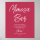 Bar de Mimosa Aplaudindo Letra Moderna à Mão Script Viva Magenta Sinais de mesa para eventos de casamento apresentam o texto "Bar de Mimosa" em tipografia de caligrafia branca moderna e elegante. Perfeito para casamentos, chá de noiva, festa de aniversário, celebrações de aniversário e muito mais. Criado por Evco Studio www.zazzle.com/store/evcostudio